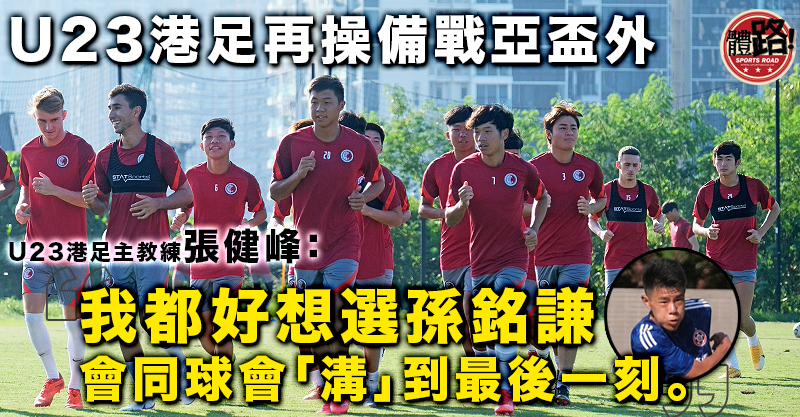 【體路專訊】香港U23足球代表隊今日(4日)在將軍澳足球訓練中心再度集訓,備戰月內在日本舉行的U23亞洲盃外圍賽。主教練張健峰指今輪集訓名單並不代表預料月中公布的決選名單,會再視乎球員狀態挑選,並強調極希望能召入東方龍獅「大港腳」前鋒孫銘謙,惟仍會再與對方球會商討。至於明日將戰首仗的「香港U23」則於今早作最後備戰,同樣擔任主帥的張健峰指已有20人名單,但球員狀態仍然未足。