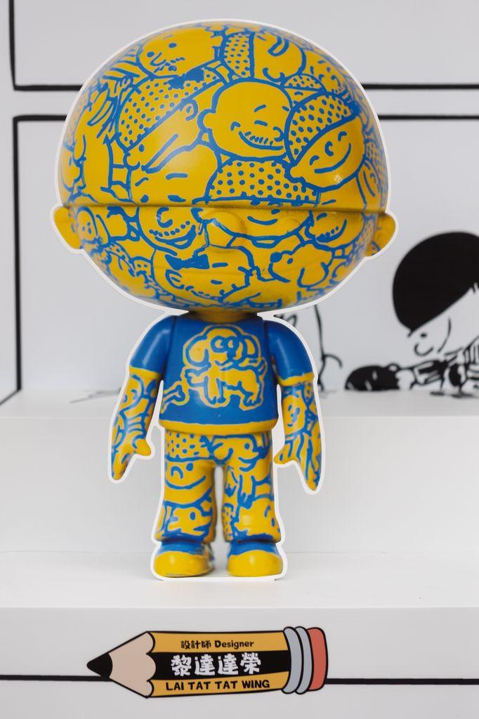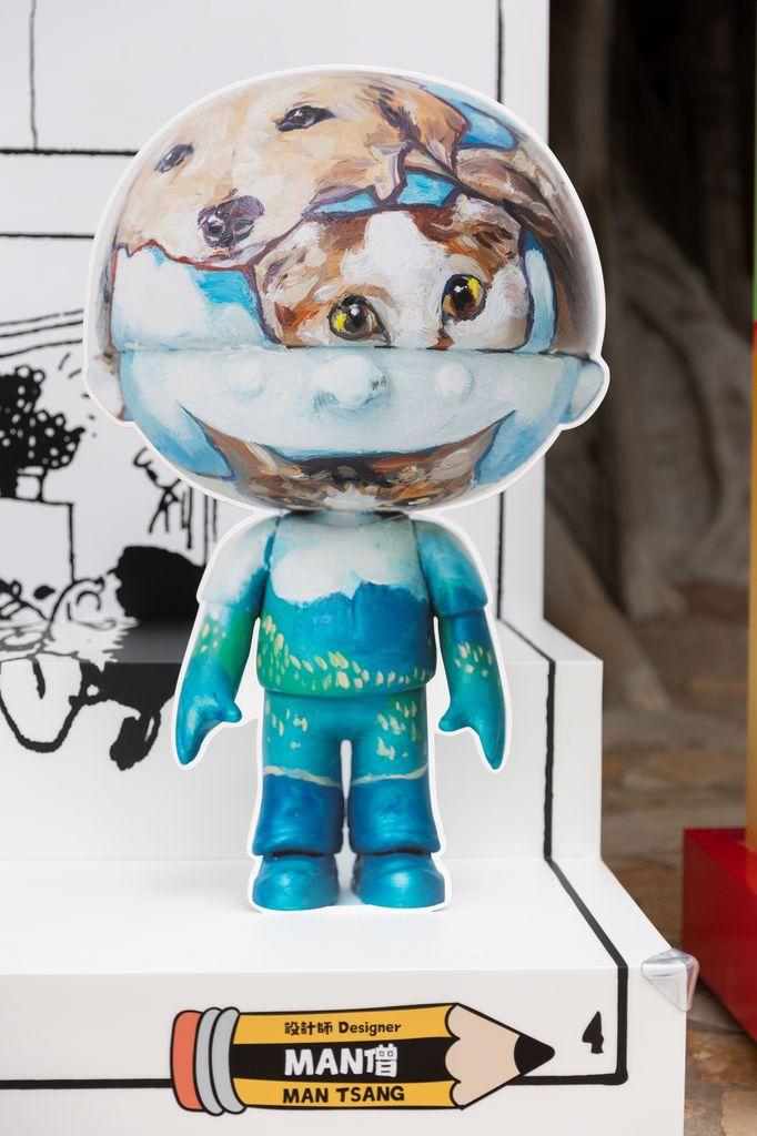 「我的牛仔時代@昂坪360」:Lousy作品。談及創作靈感,Lousy說:「小時候除了《三毛》、《老夫子》等元老級香港漫畫,以及日本漫畫外,就是看《牛仔》。最有印象是他和他父親的互動,讓人會心微笑又不失小朋友的『整蠱做怪』,確實是香港漫畫中的一股清流。這次的作品以太陽花為概念發放光與溫暖。」(圖片由相關機構提供) Man僧說:「我最喜歡『牛仔』的純真,小時候會看很多不同的漫畫,但只有《牛仔》的內容是如此純粹溫馨。這次的創作,純粹想記下我的童年,『牛仔』與『契爺』的故事令我回想起自己與父親在長洲成長的點滴,牛仔模型上繪畫的是,小時候我在長洲經常面對的環境,有山有水,也有到處閒逛的動物街坊,能在那裏長大實在幸運。從小到大,我那一身不時尚的感覺也是由此而來。」