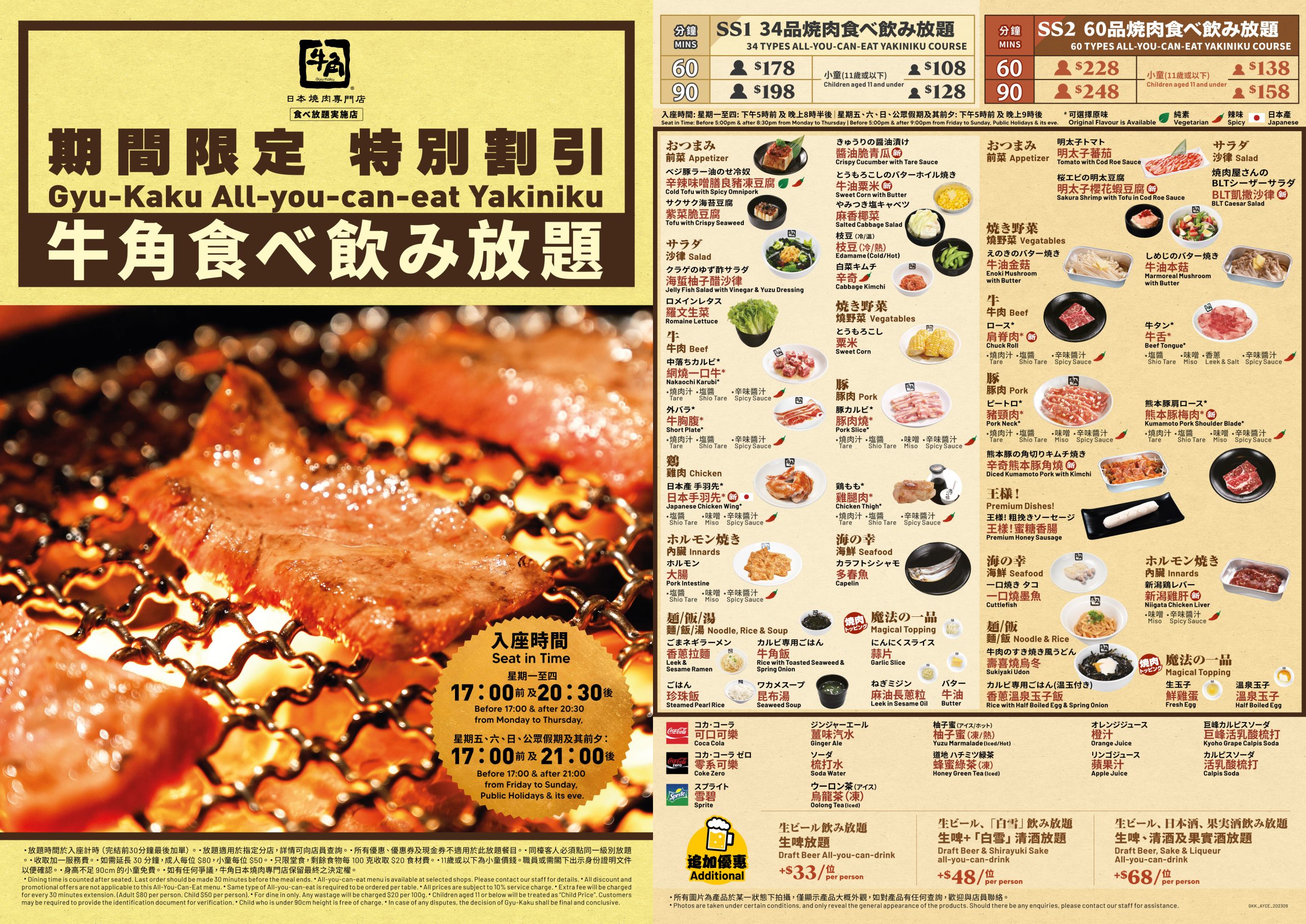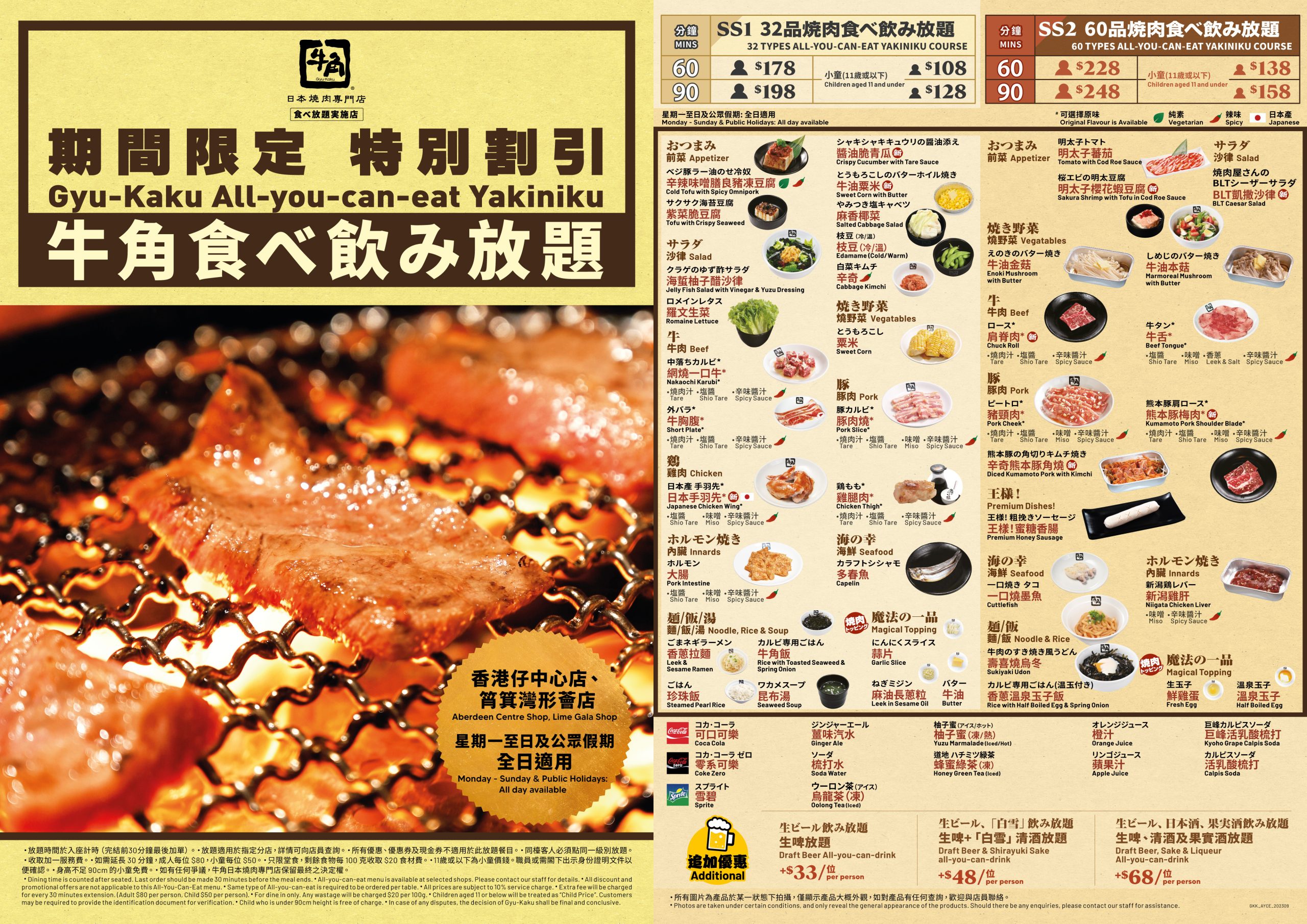 【牛角】燒肉特別割引放題$178起!加$33生啤放題!
