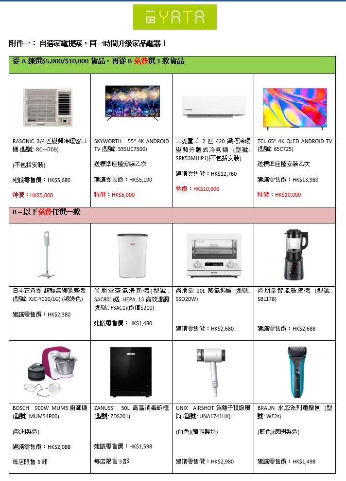 消費券優惠2022|一田消費券電器家品優惠低至三折 購買一田現金券滿千元換$110超市券【附優惠貨品詳情】