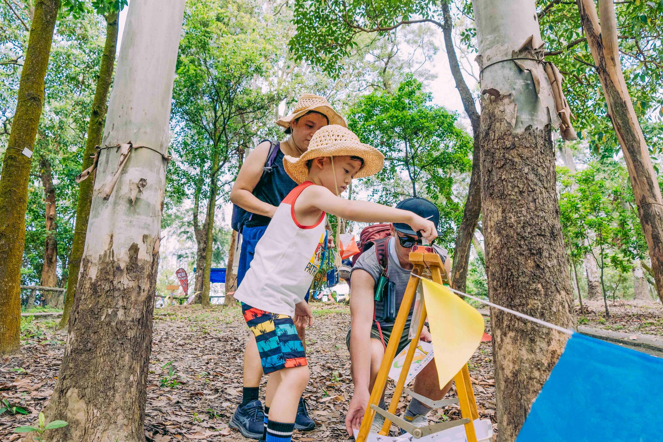 沿繩在起伏的山野走到各個控制點,讓初次接觸大自然及此活動的兒童體驗定向運動。
