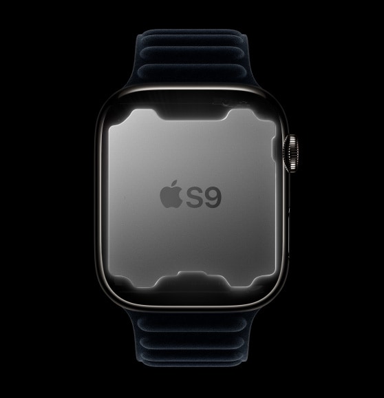 ▲Apple Watch Series 9 與 Apple Watch Ultra 2 各種感應器連同內置 S9 處理器結合演算法,更有效偵測用家的「互點兩下」操作。