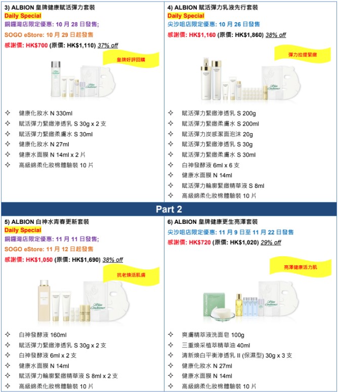 SOGO Thankful Weeks 2022崇光感謝祭|ALBION限量皇牌套裝 優惠低至五四折起