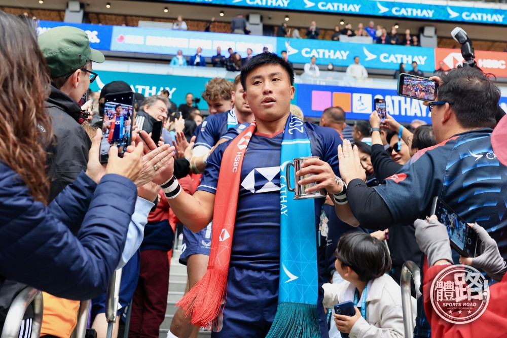 【體路專訊】首度移師啟德體育園主場館舉行的「2025年國泰/滙豐香港國際七人欖球賽」,周日(30日)下午上演「Melrose銀劍賽」決賽,最終女子港隊以38:5大勝哈薩克首度奪魁,男子港隊則以31:5擊敗中國順利衛冕。現正於威爾斯就讀大學、特地回港兩週代表港隊出戰的小將紀遠恆再度取得達陣,賽後感激球迷到場支持,更笑言:「今個周末是我生命中的最佳假期!」