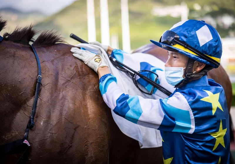 2020/21馬季早在去年9月6日展開,Jerry在第3個賽馬日策騎「八卦」揭開今季的勝利之門,及後他旺勢一直持續,在10月14日他策騎5匹坐騎全數「上名」,一共取得3冠1亞1季的成績,是他在港上陣以來首次單日3場頭馬及榮登騎師王。這位「00後」騎師在馬場不斷創出佳績,在今年6月6日策騎「福星高照」拿下今季第44場頭馬,打破「師兄」蔡明紹於2008/09馬季43場頭馬的紀錄,成為單季獲勝場數最多的見習騎師。當然「樂仔」未有就此停步,繼續在成績表上添加一個又一個佳績,最終全季取得58場頭馬,勝出率高達12.06%,僅次於本港兩大頂級騎師莫雷拉及潘頓,表現相當出眾。