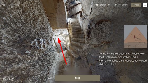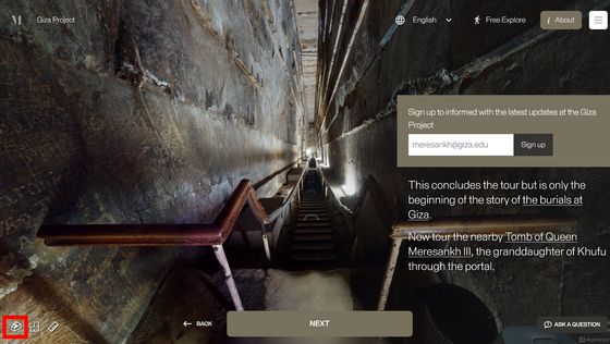 以上便是「 Inside the Great Pyramid」開放的古夫金字塔內部,點擊屏幕左下方的圖示,更可看到金字塔內部結構的 3D 地圖。