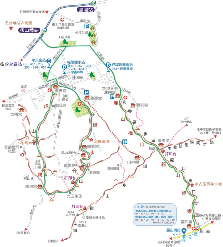 交通: 捷運後山埤站,循中坡南路往福德街方向步行,約20分鐘可抵福德街251巷慈惠堂登山口