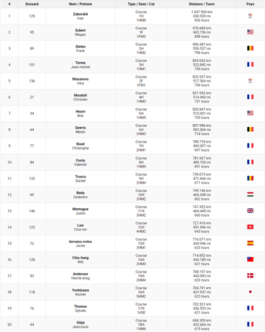 香港四徑跑手羅楚健早前完成法國 IAU 6 Jours De France 六日賽,以727.359公里 (總共17.22個全馬距離) 跑出總排名#14,亞洲排名第一,同時是香港第一位運動員出戰有國際認證的六日大賽。