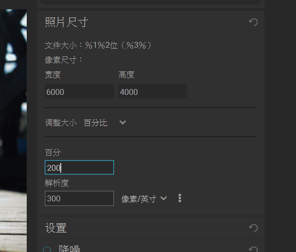 之後你便可投放一大堆(多張)解像度較低的圖片進去測試。在右手邊選擇放大率,先選「百分比」,然後再輸入200,再按下面「同步」按鈕將設定全部相片。