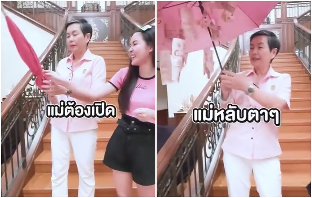 โดยในคลิป เอวา ได้บอกคุณแม่ว่ามีอะไรจะเซอร์ไพรส์ ทำเอาคุณแม่ถึงกับเอ่ยปากว่าอีกแล้วคนนี้ชอบแกล้งแม่ จากนั้น เอวา ก็ยื่นร่มสีหวานให้ และบอกให้กางร่มออกมา จังหวะที่กางร่มนี้เองทำเอาคุณแม่ถึงกับอึ้ง ร้องว้าวเมื่อได้เห็นทั้งเงินและเหรียญทองอยู่ภายในร่ม เท่านั้นยังไม่พอ เอวา ยังได้ขอให้คุณแม่หลับตา ซึ่งเจ้าตัวก็ได้ควักเงินแสนออกมาให้คุณแม่ ก่อนที่จะโผกอดขอบคุณคุณแม่ที่คอยให้กำลังใจตัวเองมาตลอด