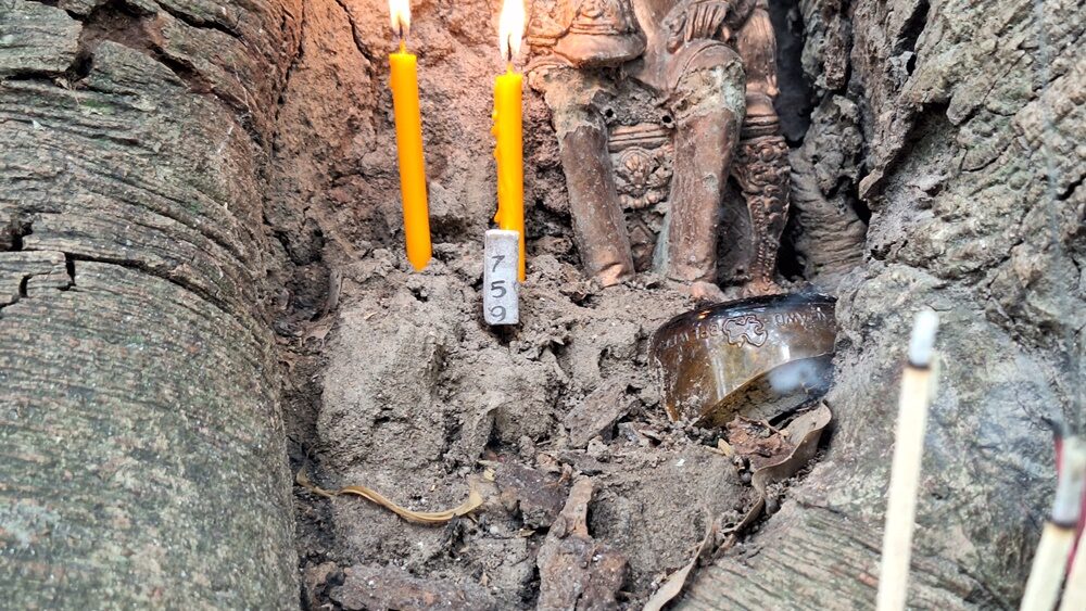 ชาวบ้านนำผ้า 3 สี ธูป เทียน และธูปจีนมาจุด พร้อมกับนำแป้งมาลูบโคนต้น เพื่อขอโชคลาภตามความเชื่อ และก่อนหน้านี้ลือกันหนาหูว่าเคยมีคนมาขอโชคแล้วถูกรางวัลไป 2 งวดติด ชาวบ้านที่ทราบข่าวจึงมาขอเสี่ยงดวงหวังมีโชคบ้าง
