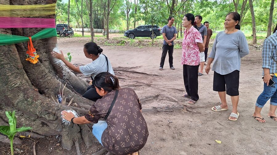 แห่ขอหวยต้นโพธิ์ยักษ์อายุกว่า 500 ปี หลังถูก 2 งวดติด พร้อมนำพวงมาลัยแก้บน นำแป้งไปโรย ลูบหาเลขเด็ดได้ 2-3 ตัว ชาวบ้านรู้ข่าว แห่ขอหวยกันตรึม