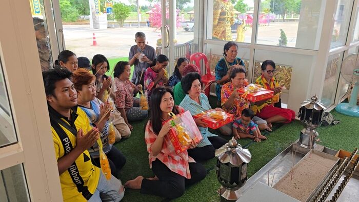 โดยพบชาวบ้านจำนวนหลายคนในมือกำลอตเตอรี่แน่น และนำดอกไม้ธูปเทียนขึ้นมากราบไหว้หลวงพ่อใหญ่ในวิหาร ชาวบ้านส่วนใหญ่ถูกรางวัลเลขท้ายชุดละ 10 ใบจำนวนมาก
