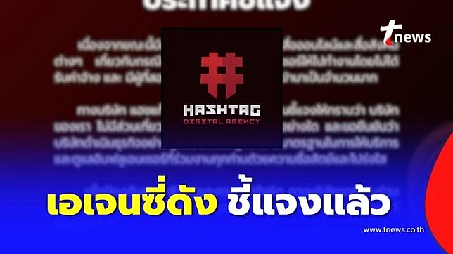 บริษัท แฮชแท็ก ดิจิทัล เอเจนซี่ ออกมาโพสต์ข้อความชี้แจง หลังมีข่าวกรณีการหลอกลวงอินฟลูเอนเซอร์ให้ไปทำงานโดยไม่ได้รับค่าจ้าง