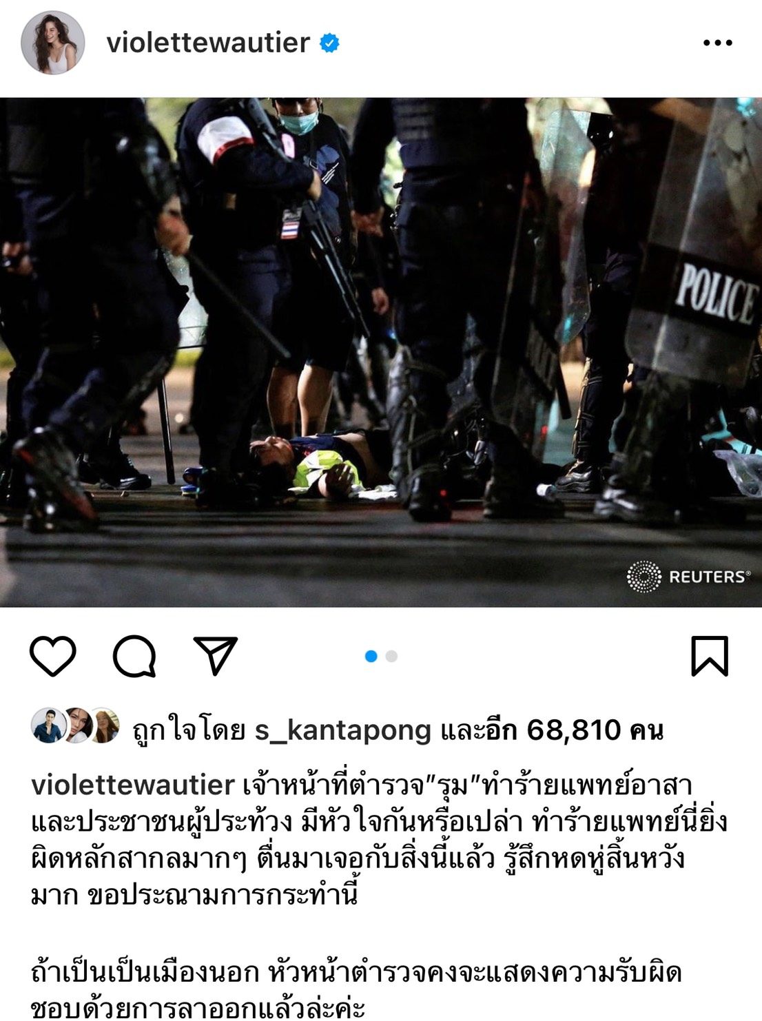 มีหัวใจกันหรือเปล่า วี วิโอเลต ประณามเหตุการณ์ตำรวจรุมทำร้ายแพทย์อาสา ผิดหลักสากล เผยหดหู่สิ้นหวังมาก หากเป็นต่างประเทศ ต้องรับผิดชอบด้วยการลาออก