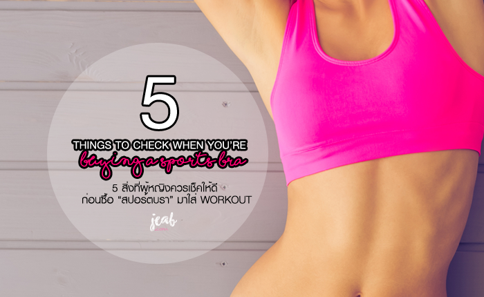 “สปอร์ตบรา” คือ เสื้อชั้นในใส่ออกกำลังกายของผู้หญิง ที่ถือว่าเป็นไอเท็มหลักที่สาวๆ ชอบออกกำลังกายต้องมีติดตัวเอาไว้ เพื่อให้การออกกำลังกายเป็นไปอย่างสะดวก ช่วยปกป้องสรีระและทำให้หน้าอกไม่หย่อนยาน ซึ่งสปอร์ตบราก็มีหลายแบบ หลายยี่ห้อ แล้วแบบนี้ ถ้าเราคิดจะซื้อสักตัวมาใส่ออกกำลังกาย ตัวไหนกันล่ะ ที่ถือว่าดี ที่ควรจะซื้อ วันนี้ Jeab.com ก็มี 5 สิ่งที่ต้องเช็คก่อนจะซื้อสปอร์ตบรามาฝากสาวๆ กันด้วยค่ะ มาดูกันว่าเราต้องเช็คอะไรก่อนซื้อกันบ้าง