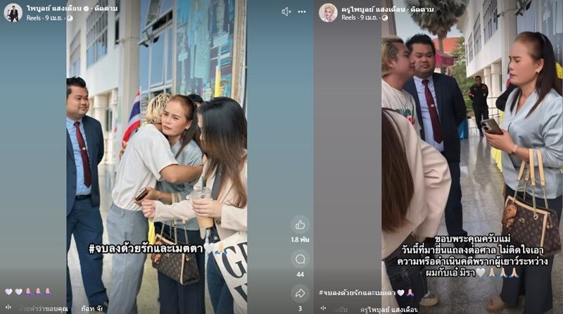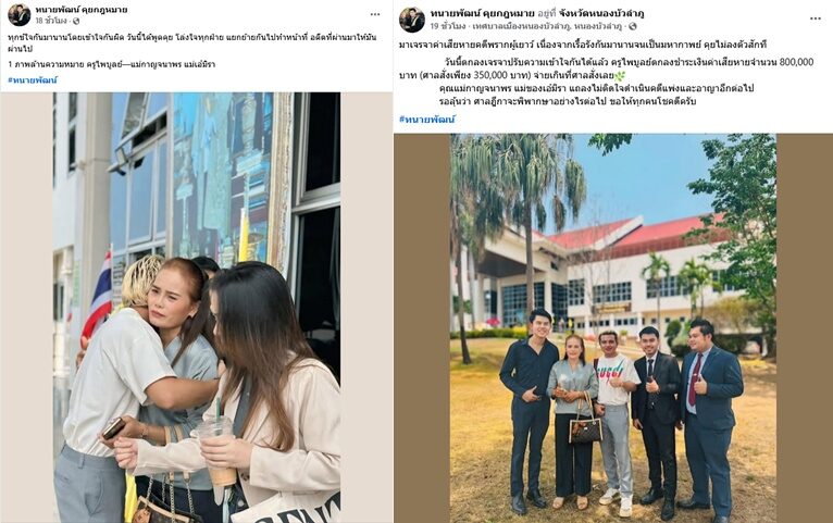 ปิดมหากาพย์คดีพรากผู้เยาว์ ทนายพัฒน์ โพสต์ภาพหลังจบการเจรจาที่ศาลระหว่างครูไพบูลย์ กับ แม่ของ เอ๋ มิรา พร้อมแคปชั่นว่า