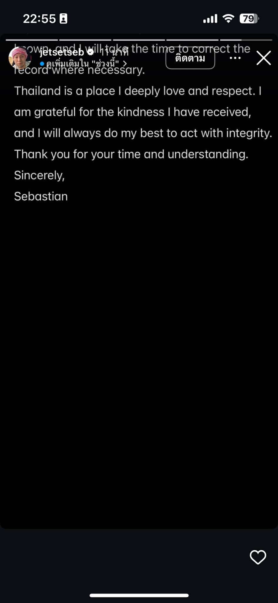 เซบาสเตียน ลี เคลื่อนไหว หลังรูปหายเกลี้ยงไอจี แจงไม่ปลอดภัย ย้ำไม่เกี่ยวธุรกิจสีเทา-ค้าอาวุธ ยังคงรักและเคารพประเทศไทย