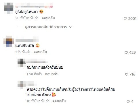 “ให้มันโสดแต่กูนี่แหละ! เศร้าอ่ะ … ฮือ ฮือ ฮือ!!! , น่ารักทั้งคู่ , อ้อมกอดนั้นมันเคยเป็นของฉันน , กรูไปอยู่ไหนมา งงมากมาย , ตายแล้วฉันไปอยู่ไหนมา แต่ใดใดคือ หน้าเหมือนกันมากกก” เป็นต้น ขณะที่หนุ่มเจ้าของโพสต์ก็ไม่ได้มาคอมเมนต์ตอบอะไรด้วย