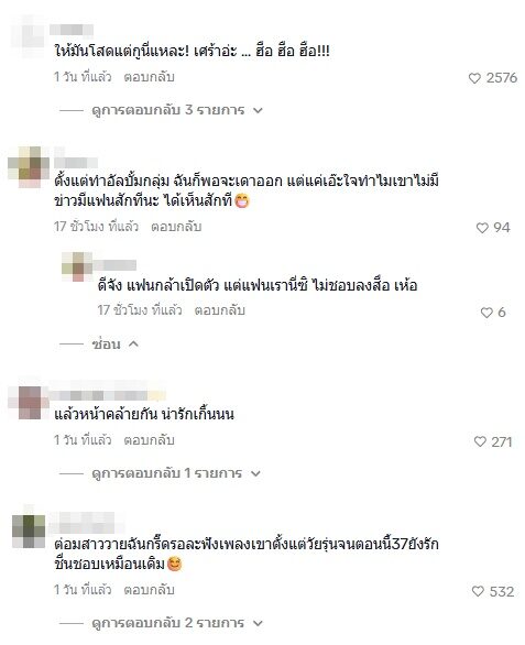 หรืออีกคอมเมนต์บอกว่า “ในเม้นต์แซวเล่นรึจริงคะ” ก็มีคนมาตอบอีกว่า “คู่จริงค่า” หรืออีกหลายคอมเมนต์ที่เข้าใจว่าหนุ่มไอซ์เปิดตัวแฟนก็คอมเมนต์กันรัวๆ อาทิ