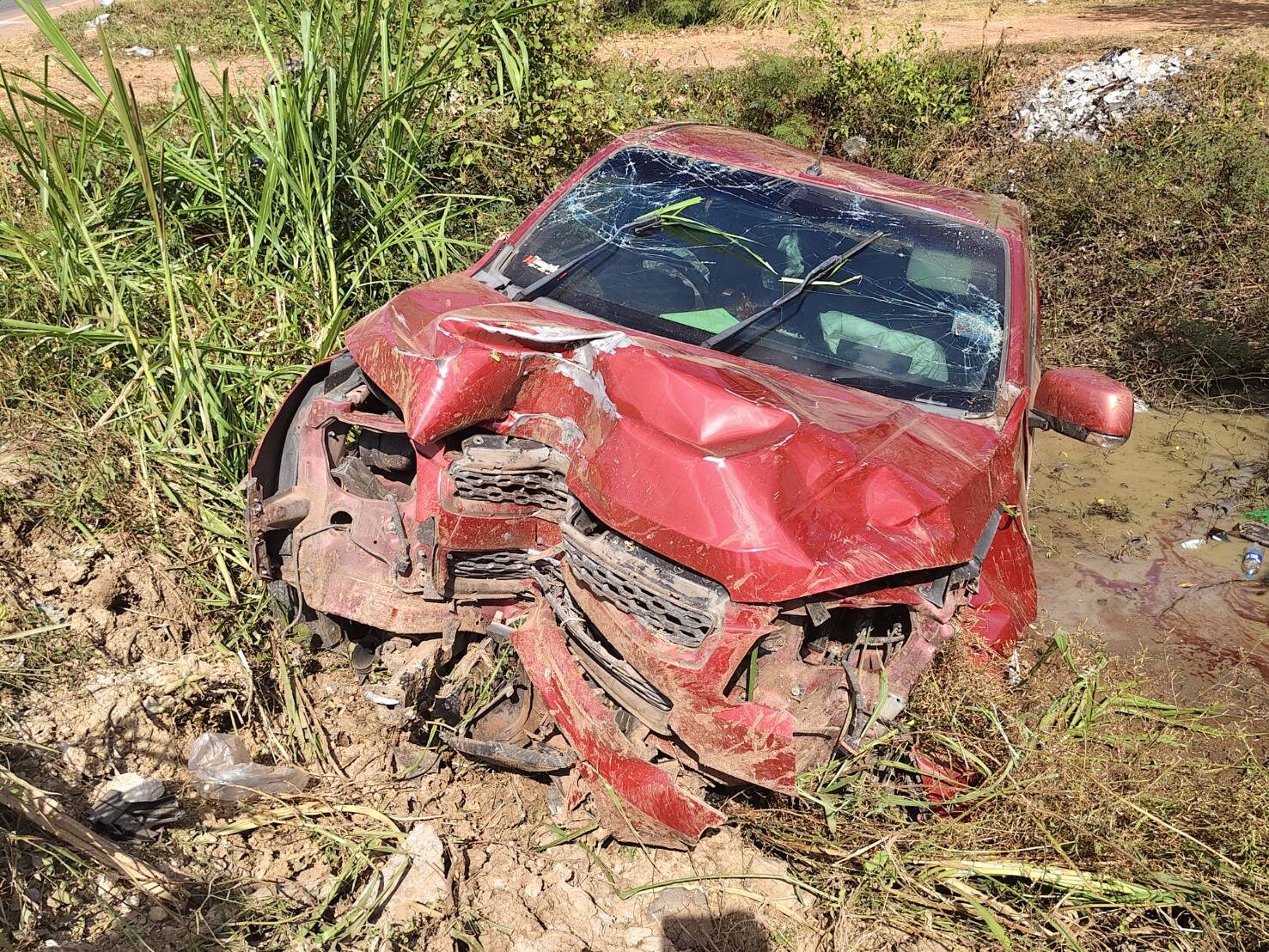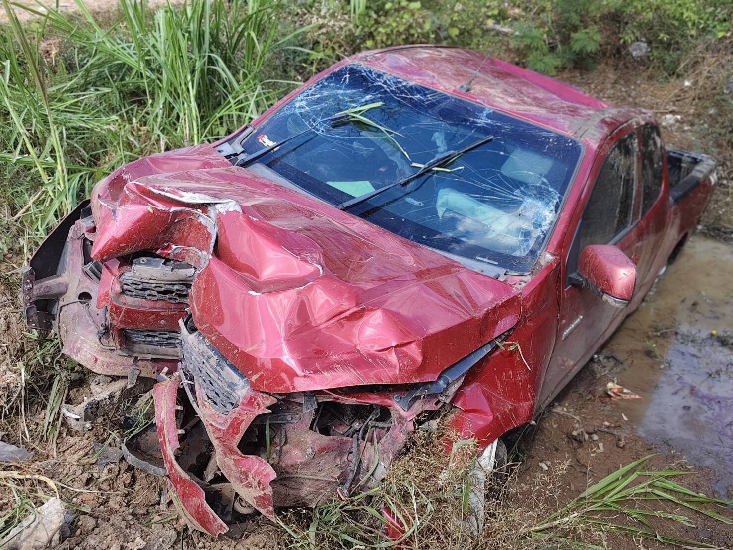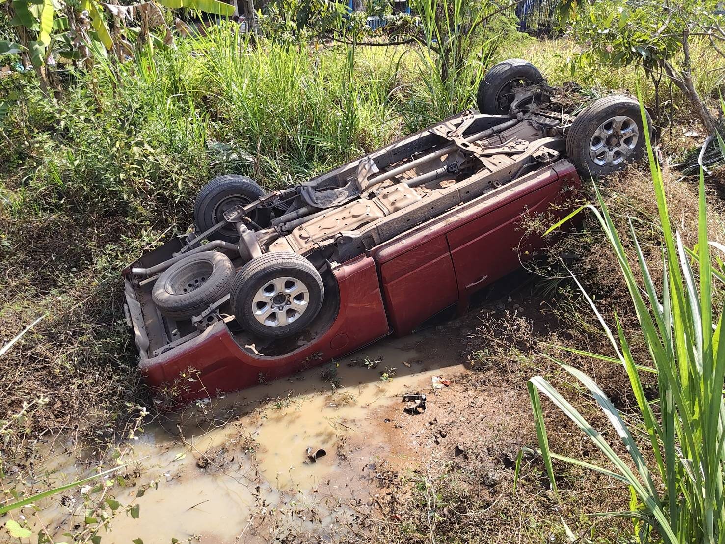 ที่เกิดเหตุเป็นถนน 2 เลน ทางหลวงหมายเลข 2033 สายหนองญาติ-นาแก พบ รถกระบะ เชฟโรเลต สีแดง ทะเบียนพระนครศรีอยุทธยา ตกคลองน้ำลึก 2 เมตร สภาพรถล้อชี้ฟ้า พังยับ มี นายวัฒนา (สงวนนามสกุล) อายุ 25 ปี อาชีพรับเหมาลงสินค้า เป็นคนขับ ได้รับบาดเจ็บเล็กน้อย และไม่ประสงค์ไปโรงพยาบาล