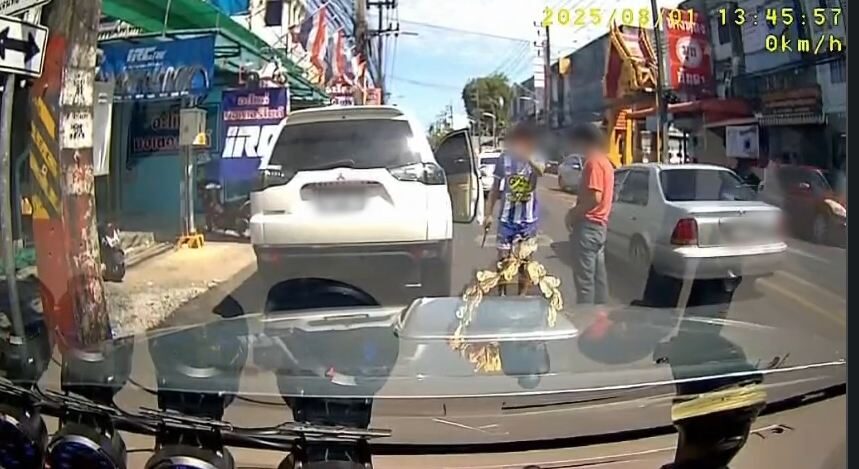 จากกรณีเหตุการณ์บนถนนเทพกระษัตรี อำเภอเมืองภูเก็ต จังหวัดภูเก็ต เมื่อเวลาประมาณ 13.45 น. วันที่ 11 มีนาคม 2569 พบรถยนต์ SUV สีขาวเลี้ยวออกจากปั๊มน้ำมันตัดหน้ารถที่วิ่งมาตามทางตรง จนอีกฝ่ายต้องบีบแตรเตือน ก่อนที่คนขับ SUV จะจอดรถและลงมาพร้อมวัตถุคล้ายมีด เดินเข้าหาคู่กรณี ทำให้ผู้ขับรถอีกคันรีบกลับขึ้นรถ