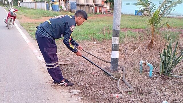 ส่องบ้านเลขที่ งูจงอาง กินงูเห่าอยู่หน้าบ้านวันหวยออก แจ้งจนท.จับวุ่น