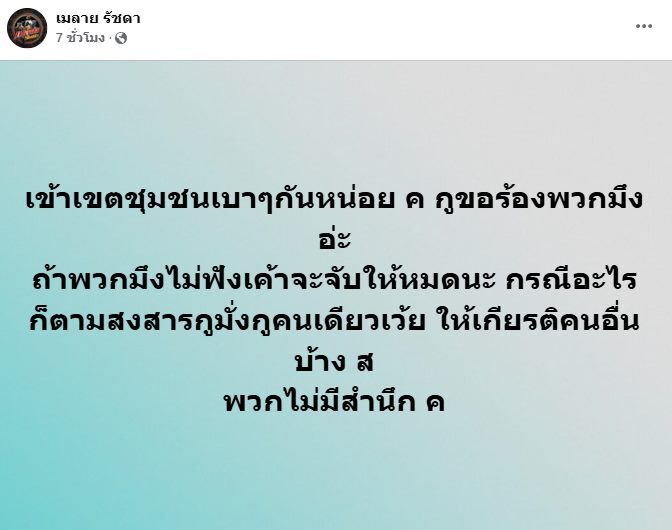 ล่าสุด “เมลาย รัชดา” หัวหน้าแก๊งน้ำไม่อาบ โพสต์เฟซบุ๊กแจ้งผู้ที่ร่วมทริป โดยระบุว่า เข้าเขตชุมชนเบา ๆ กันหน่อย ค กูขอร้องพวกมึงอ่ะ ถ้าพวกมึงไม่ฟังเค้าจะจับให้หมดนะ กรณีอะไรก็ตามสงสารกูมั่งกูคนเดียวเว้ย ให้เกียรติคนอื่นบ้าง ส พวกไม่มีสำนึก ค