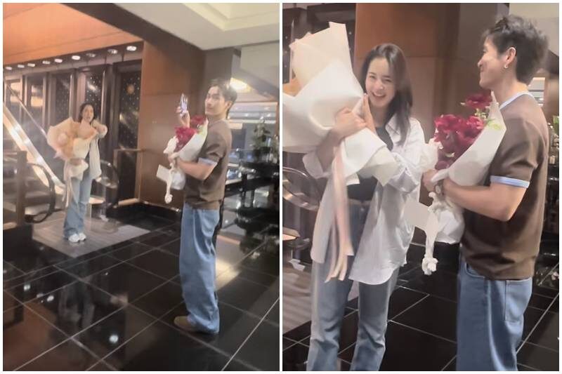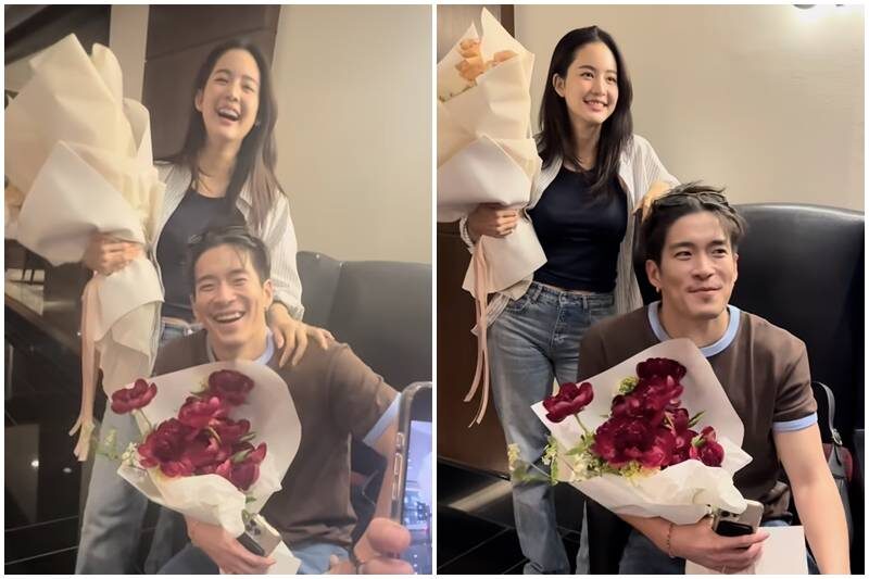 พี่ก้อง ปิยะ เป็นปาปารัซซี่แอบถ่ายคู่เรา? “นัดกันไปกินสองคน กินข้าว เป็นวันครบรอบเฉยๆ ประมาณ 3 ปีกว่าๆ ก็มีให้ดอกไม้กันทุกเดือนอยู่แล้ว รอบนี้เป็นดอกพีโอนี ก็น่าร๊ากกกก อาจจะเป็นเรื่องของบุญพาวาสนาส่งหรือว่าเป็นเรื่องของเวรกรรมของพี่ๆ ที่ต้องมาเจอเรา บังเอิญไปเจอกัน ได้เจอพี่ก้อง และพี่ๆ คนใหญ่คนโตหลายๆ ท่าน ตอนแรกโบว์ก็ถามยุบโต๊ะรวมกันเลยไหมจะได้นั่งคุยกัน เขาก็บอกไม่เป็นไร แยกๆ กันดีกว่า ไปส่วนตัวเถอะ แต่สุดท้ายเขาก็บอกแยกเถอะ เราก็เกรงใจพี่ๆ เขามาคุยงานกัน ก็แยกโต๊ะ แต่เป็นโต๊ะที่เอื้อต่อกัน”