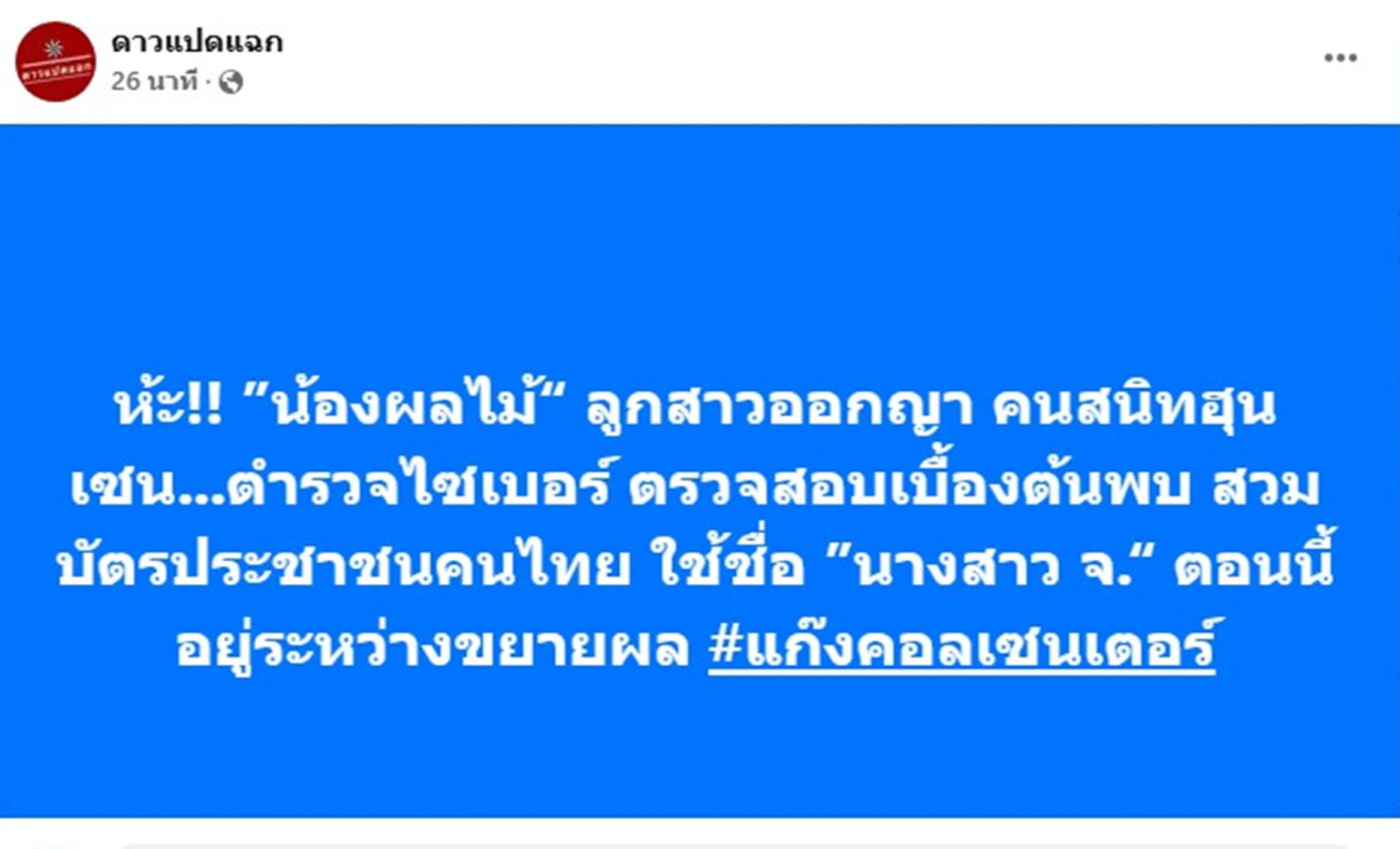 เมื่อวันที่ 8 ก.ค.68 เพจเฟซบุ๊ก "ดาวแปดแฉก" โพสต์ข้อความ ระบุว่า "ห้ะ!! ”น้องผลไม้“ ลูกสาวออกญา คนสนิทฮุนเซน…ต...