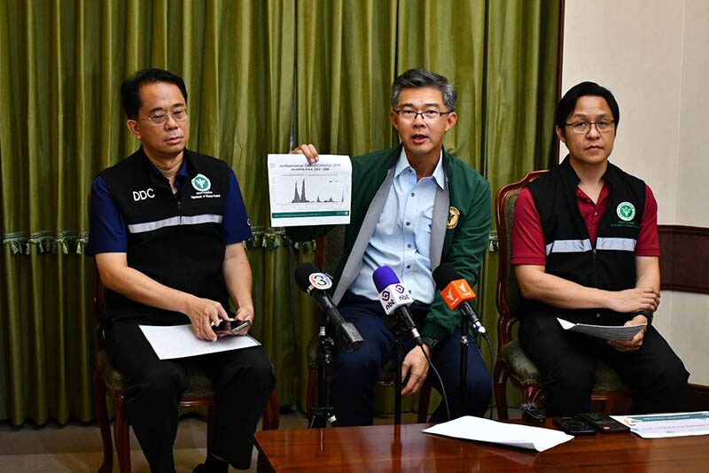 โดยตั้งแต่วันที่ 1 ม.ค. - 3 มิ.ย. 2568 พบผู้ป่วย 324,692 ราย อัตราป่วยอยู่ที่ 500.20 ต่อประชากรแสนคน จังหวัดที่มีอัตราป่วยสูงสุดคือ กทม. ชลบุรี ระยอง ภูเก็ต และนครปฐม มีการระบาดเป็นกลุ่มก้อนในสถานศึกษา 12 เหตุการณ์ เรือนจำ 6 เหตุการณ์ ค่ายทหาร 4 เหตุการณ์ และโรงพยาบาล 2 เหตุการณ์ ภาพรวมแนวโน้มผู้ป่วยเริ่มเพิ่มขึ้นตั้งแต่สัปดาห์ที่ 16 เป็นต้นมา และช่วงสัปดาห์ที่ 19-22 จำนวนผู้ป่วยสูงกว่าค่าเฉลี่ยย้อนหลัง 5 ปี และสูงกว่าช่วงเวลาเดียวกันของปี 2567