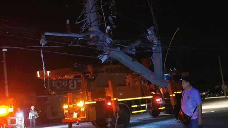 หนุ่มอดีตเด็กช่าง ฉลองวันสถาปนา เมาซิ่งแหกด่าน ชนเสาไฟแรงสูงทำไฟดับทั้งตำบล เสียหายเกือบล้าน