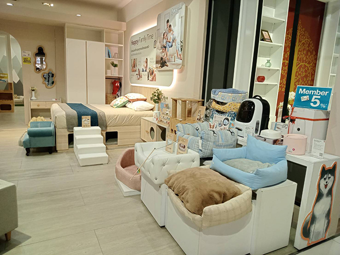 ในยุคที่สัตว์เลี้ยงไม่ได้เป็นแค่เพื่อนคลายเหงา แต่กลายเป็น “หนึ่งในสมาชิกสำคัญของครอบครัว” ความต้องการในการสร้างพื้นที่อยู่อาศัยที่ตอบโจทย์ทั้งเจ้าของและสัตว์เลี้ยงจึงเติบโตขึ้นอย่างต่อเนื่อง และกลายเป็นไลฟ์สไตล์ใหม่ที่คนรุ่นใหม่ให้ความสำคัญมากขึ้นเรื่อย ๆ เอสบี ดีไซน์สแควร์ ในฐานะผู้นำด้านไลฟ์สไตล์เฟอร์นิเจอร์ของไทย มองเห็นเทรนด์นี้ตั้งแต่ระยะเริ่มต้น และเชื่อว่าการอยู่ร่วมกันระหว่างคนกับสัตว์เลี้ยงอย่างมีคุณภาพนั้น เริ่มต้นจาก "บ้าน" ที่เข้าใจและออกแบบมาอย่างใส่ใจ เราจึงเดินหน้าพัฒนาเฟอร์นิเจอร์และของแต่งบ้านที่เป็นมิตรกับสัตว์เลี้ยง โดยคำนึงถึงทั้งฟังก์ชันการใช้งาน ความปลอดภัย และดีไซน์ที่กลมกลืนไปกับบ้าน เช่น เตียงนอนที่สามารถเลื่อนลิ้นชักออกมาเป็นที่พักสำหรับสัตว์เลี้ยง, ชั้นวางของที่มีช่องพิเศษเก็บอุปกรณ์สัตว์เลี้ยง หรือแม้แต่โซฟาน่ารัก ๆ ที่ถูกออกแบบมาเฉพาะสำหรับน้องหมาน้องแมว ซึ่งล้วนช่วยเติมเต็มความอบอุ่นในทุกมุมของบ้าน “ปัจจุบันผู้บริโภคไม่ได้มองเฟอร์นิเจอร์แค่เรื่องดีไซน์อีกต่อไป แต่ให้ความสำคัญกับการใช้งานที่ตอบโจทย์สัตว์เลี้ยง และรู้สึกว่าเฟอร์นิเจอร์กลายเป็นส่วนหนึ่งที่ช่วยสร้างความผูกพันในบ้านได้ เราจึงตั้งใจออกแบบทุกชิ้นด้วยความเข้าใจและใส่ใจในทุกดีเทล เพื่อให้คนกับสัตว์เลี้ยงอยู่ร่วมกันได้อย่างมีความสุขที่สุด”นายพิเดช ชวาลดิฐ กรรมการบริหาร กลุ่มบริษัท เอสบี เฟอร์นิเจอร์ กล่าว