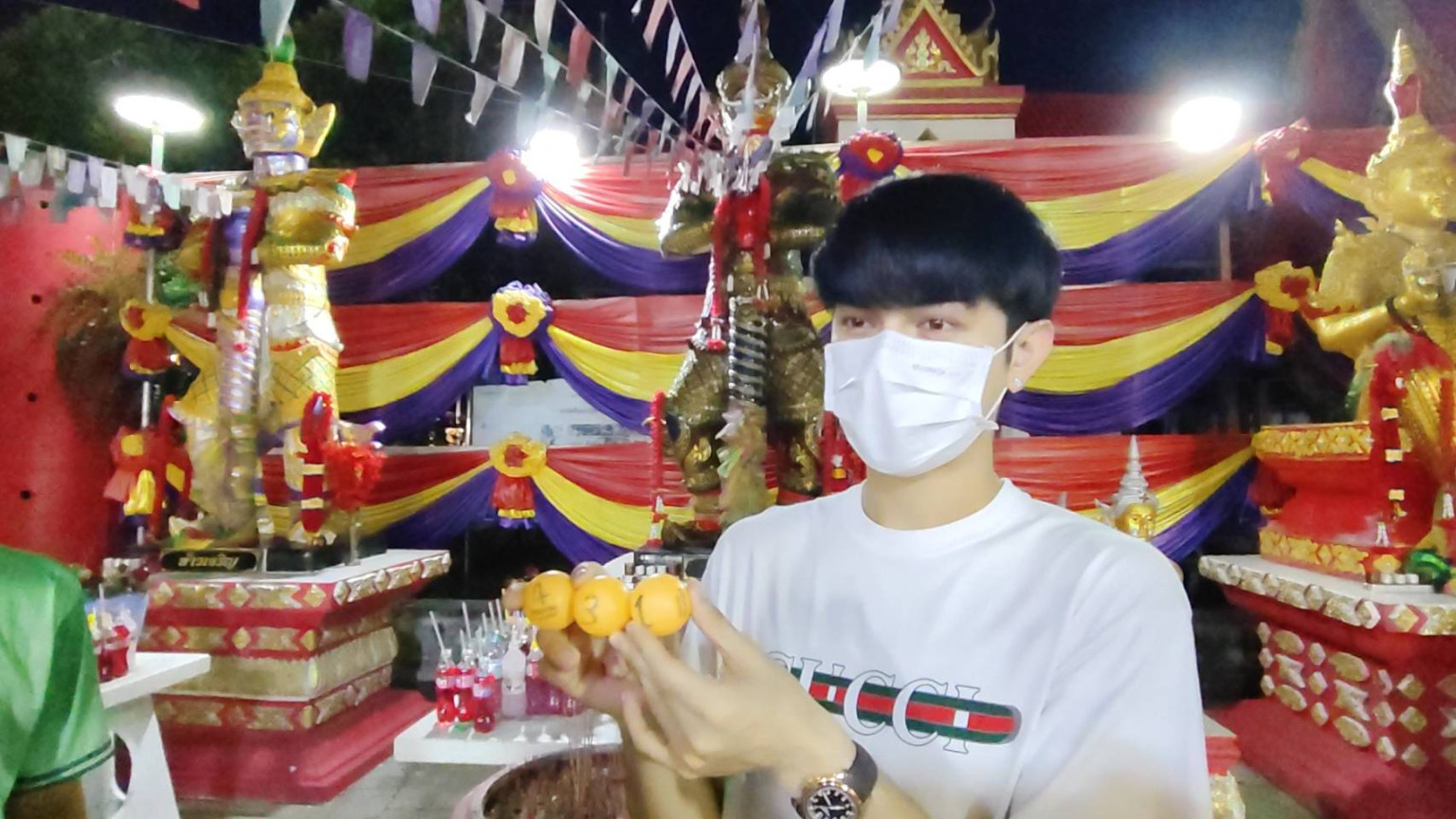 'แบงก์'ศรรามน้ำเพชรขอโชคท้าวเวสสุวรรณคู่วัดหัวโพธิ์ สุพรรณบุรีก่อนขึ้นทำการแสดง