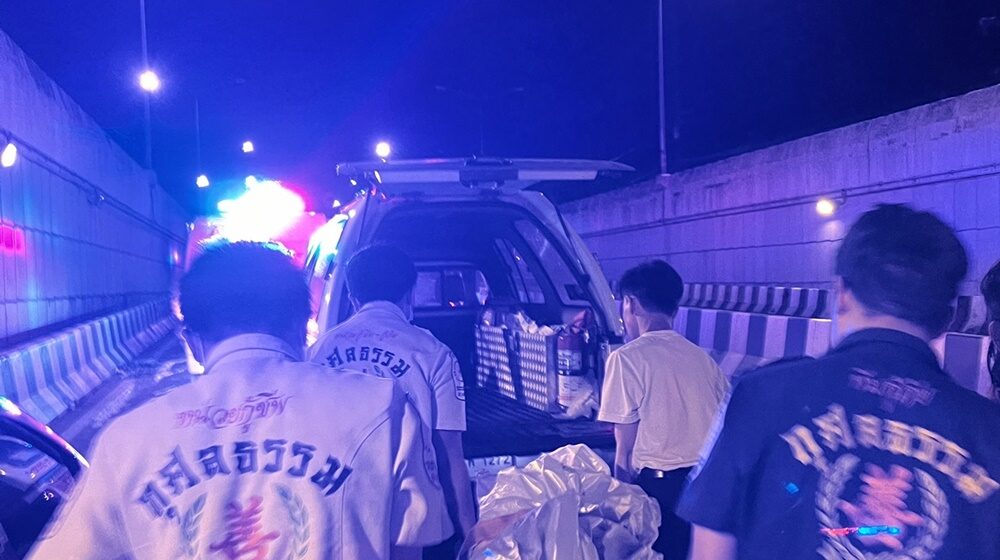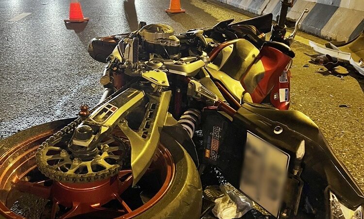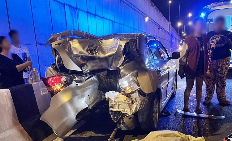 หนุ่มควบบิ๊กไบก์ ลงอุโมงค์ เสียหลักชนท้ายเก๋งพังยับ ร่างกระเด็นดับสลด