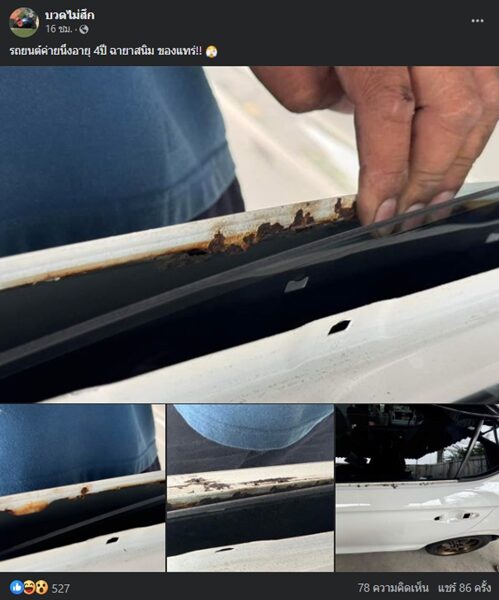 อ่านข่าวต้นฉบับได้ที่ : สุดช้ำ รถยนต์ค่ายดัง 4 ปี สนิมกิน เปิดดูแทบร้อง เป็นทั้งแนวขอบกระจก