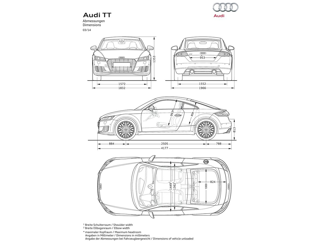 ออดี้ ทีที (Audi TT) ใหม่ 2.0 TFSI พร้อมเปิดตัวสู่ตลาดในประเทศไทยในเดือนเมษายน 2558 นี้ นำเข้าและจำหน่ายโดยบริษัท เยอรมัน มอเตอร์ เวิร์ค จำกัด ผู้ได้รับไว้วางใจให้เป็นตัวแทนออดี้ แต่เพียงผู้เดียวในประเทศไทย พร้อมการสนับสนุนด้านราคาจากบริษัทฯ ในประเทศเยอรมนี ให้คุณเป็นเจ้าของรถสปอร์ต สัญชาติเยอรมันแท้ ผลิตเพื่อลูกค้าในประเทศไทยและบริการหลังการขายระดับเวิลด์คลาส นอกจากนี้ยังมั่นใจด้วยการรับประกันคุณภาพนาน 5 ปี รับประกันตัวถังปลอดสนิมตลอดอายุการใช้งาน และบริการช่วยเหลือฉุกเฉินตลอด 24 ชั่นโมง อุ่นใจทุกการเดินทาง เยี่ยมชมรถยนต์ออดี้ ได้ที่โชว์รูมพระราม9 สอบถามรายละเอียดเพิ่มเติม โทร. 02-719-7979 ดูราคา-สเปค และโปรโมชั่น AUDI ทุกรุ่น