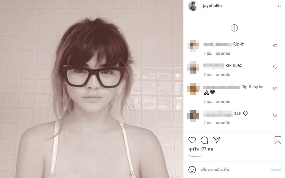 คนในวงการบันเทิงร่วมอาลัย อดีตนางเอก-นางแบบดัง ขณะที่อินสตาแกรมส่วนตัวของ เจ ไพลิน โพสต์สุดท้ายเมื่อวันที่ 7 เม.ย. มีแฟนคลับและชาวเน็ตเข้าไปร่วมแสดงอาลัยตกใจกับการเสียชีวิตครั้งนี้