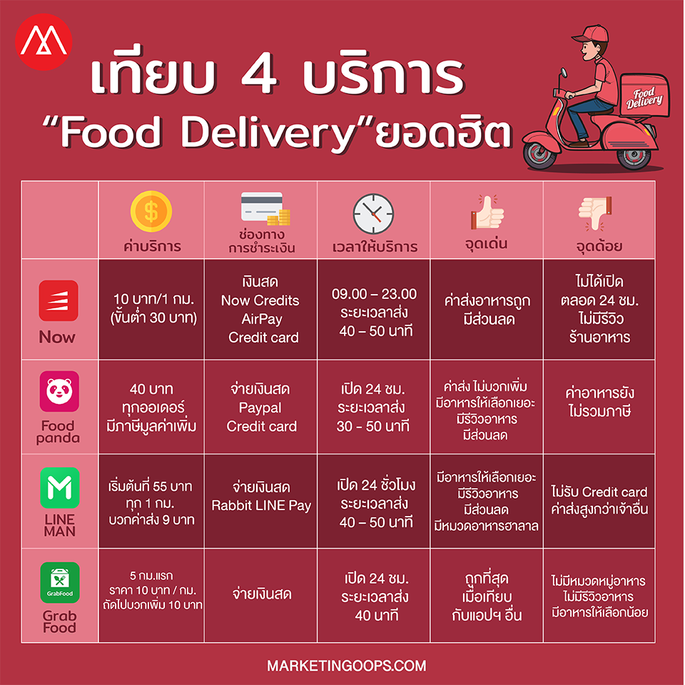 เปรียบเทียบจุดเด่น-จุดด้อย!! 4 แอปพลิเคชัน "Food Delivery" ยอดฮิต