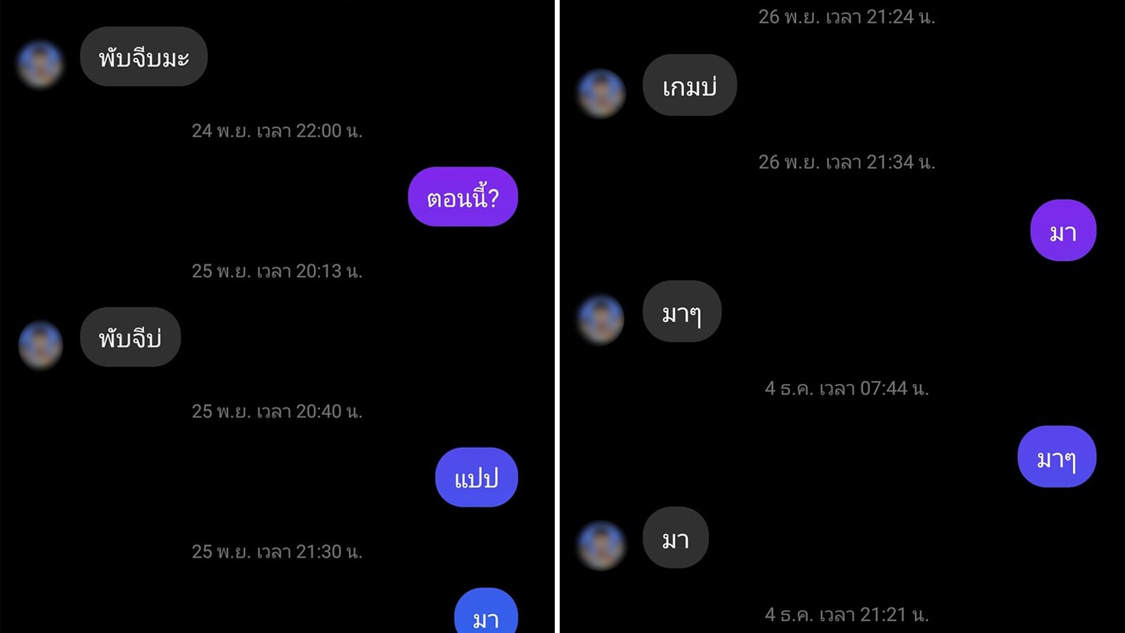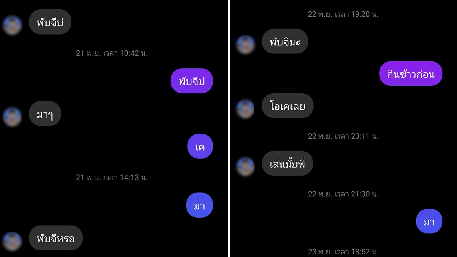 จากโพสต์ จะเห็นว่าทั้ง 2 คน เริ่มพูดคุยกันมาตั้งแต่วันที่ 20 พฤศจิกายน 2564 โดยผู้ที่เป็นฝ่ายเริ่มบทสนทนาจะทักด้วยข้อความว่า"พับจีบ่" ส่วนอีกฝ่ายก็จะตอบกลับมาไม่เกินหนึ่งประโยคหรือหนึ่งคำ อย่าง "มา ๆ", "แป๊บ", "เค" เพียงเท่านี้ก็เป็นอันรู้กัน