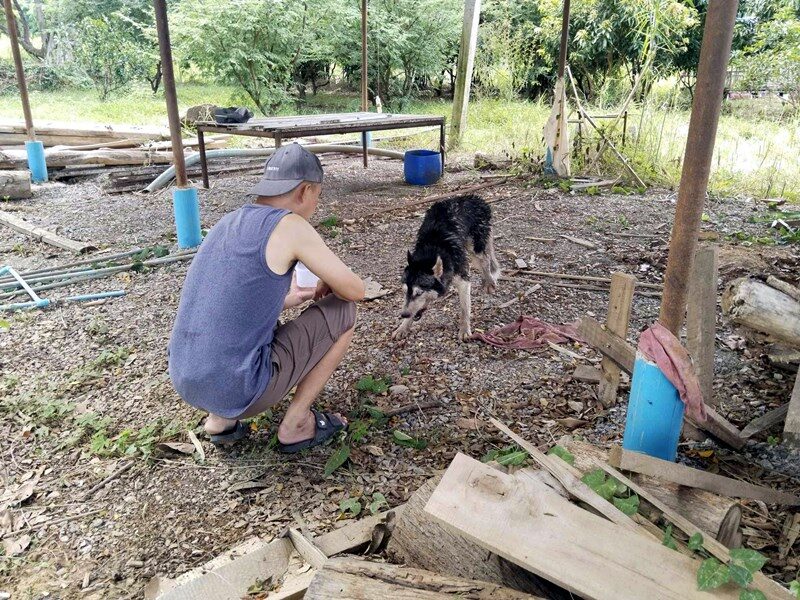 ตรวจสอบพบว่าสุนัขเชื่องจับตัวได้ พบบาดแผลบริเวณลำคอ และขาข้างขวาทั้งหน้าและหลัง มีอาการบวมจากการถูกเชือกรัด 5-6 รอบ จนบวมเป่ง เจ้าหน้าที่นำอาหารมาให้สุนัขทานและเช็ดตัวให้ลดอาการหนาวสั่น