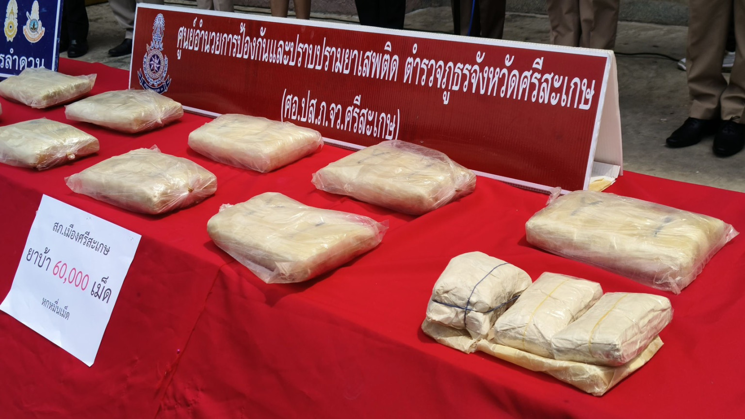 ผู้ว่าฯศรีสะเกษแถลงข่าวจับกุมเครือข่ายคดียาเสพติดตามยุทธการ " พิฆาตทรชนคนค้ายาอีสานใต้ ภ.3 และ238 พิทักษ์นครลำดวน"ได้ผู้ต้องหา 2,461 คน ของกลางยาบ้า 1,226,599 เม็ด ยึดทรัพย์สินมูลค่าประมาณ 49 ล้านบาทเศษ