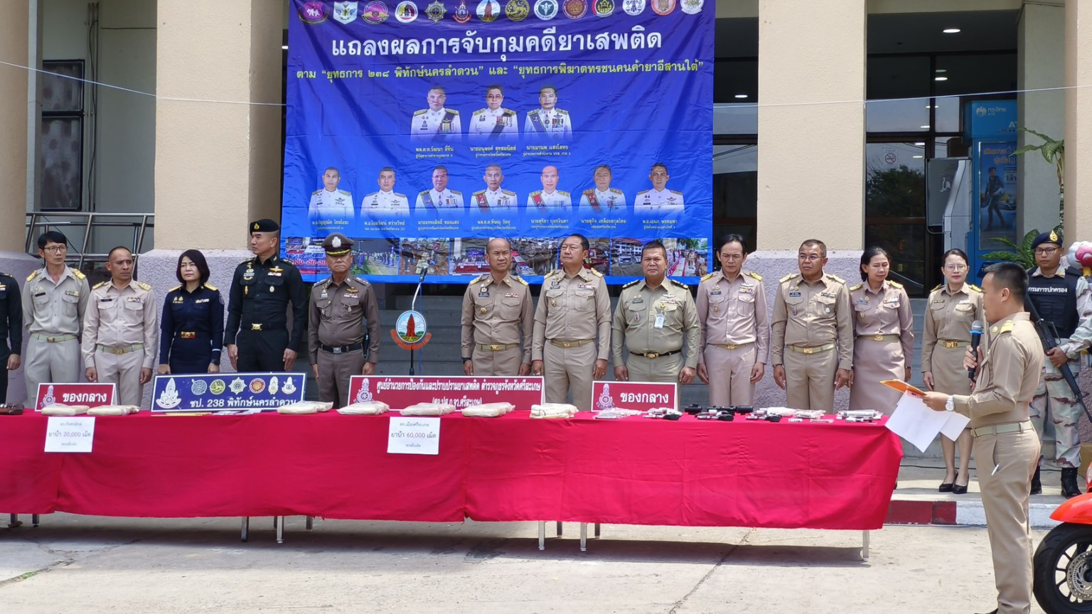 ผู้ว่าฯศรีสะเกษแถลงรวบเครือข่ายคดียาเสพติดตามยุทธการ " พิฆาตทรชนคนค้ายาอีสานใต้ ภ.3 และ238 พิทักษ์นครลำดวน"ได้ผู้ต้องหา 2,461 คน