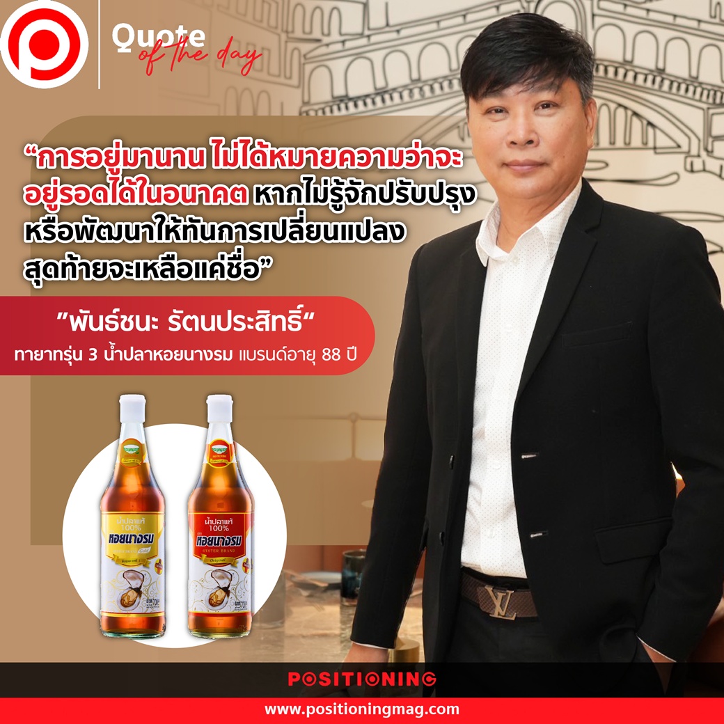 ‘พันธ์ชนะ รัตนประสิทธิ์’ กรรมการผู้จัดการ บริษัท น้ำปลาพิไชย จำกัด และทายาทรุ่น 3 น้ำปลาหอยนางรม บอกว่า ที่ผ่านมาการเติบโตของน้ำปลาหอยนางรมได้บุญเก่าตั้งแต่รุ่นปู่และรุ่นพ่อที่มีการบุกเบิกและพัฒนาธุรกิจมา แต่ตอนนี้ถึง‘ยุคที่ต้องตั้งตัวใหม่’ และปรับโฟกัสธุรกิจให้สอดคล้องกับการเปลี่ยนแปลงของโลกและผู้บริโภค โดยเขาต้องการพาแบรนด์หอยนางรมเข้าถึงคนรุ่นใหม่ให้มากขึ้น
