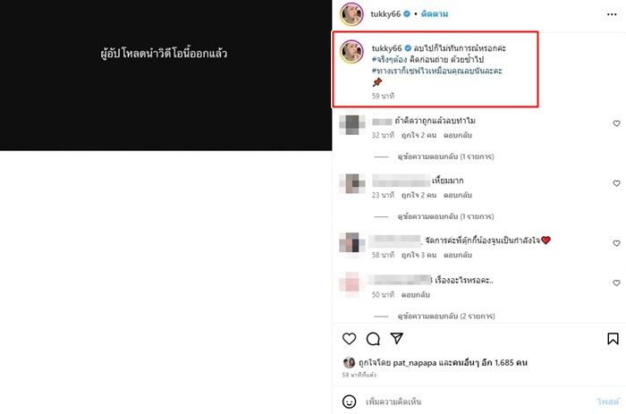 สนิทก็ไม่ ไม่รู้จักกัน เลย เอาความมั่นใจตรงไหน เข้าไปถ่ายถึงในบ้าน ถ้าบอกว่า มาดี มันคนละประเด็น แต่ควรให้เกียรติ ลูกเค้า เพราะเค้าก็คนมีชื่อเสียง แต่ไม่ใช่เพราะเป็นพ่อแม่ตุ๊กกี้เหรอ ถึงมาถ่ายเพื่อเอายอดวิว แล้วไม่ไปถ่ายตาสีตาสาแถวบ้านคุณล่ะ !!!!!!!” ล่าสุดพบว่าคลิปดังกล่าวไม่อยู่แล้ว