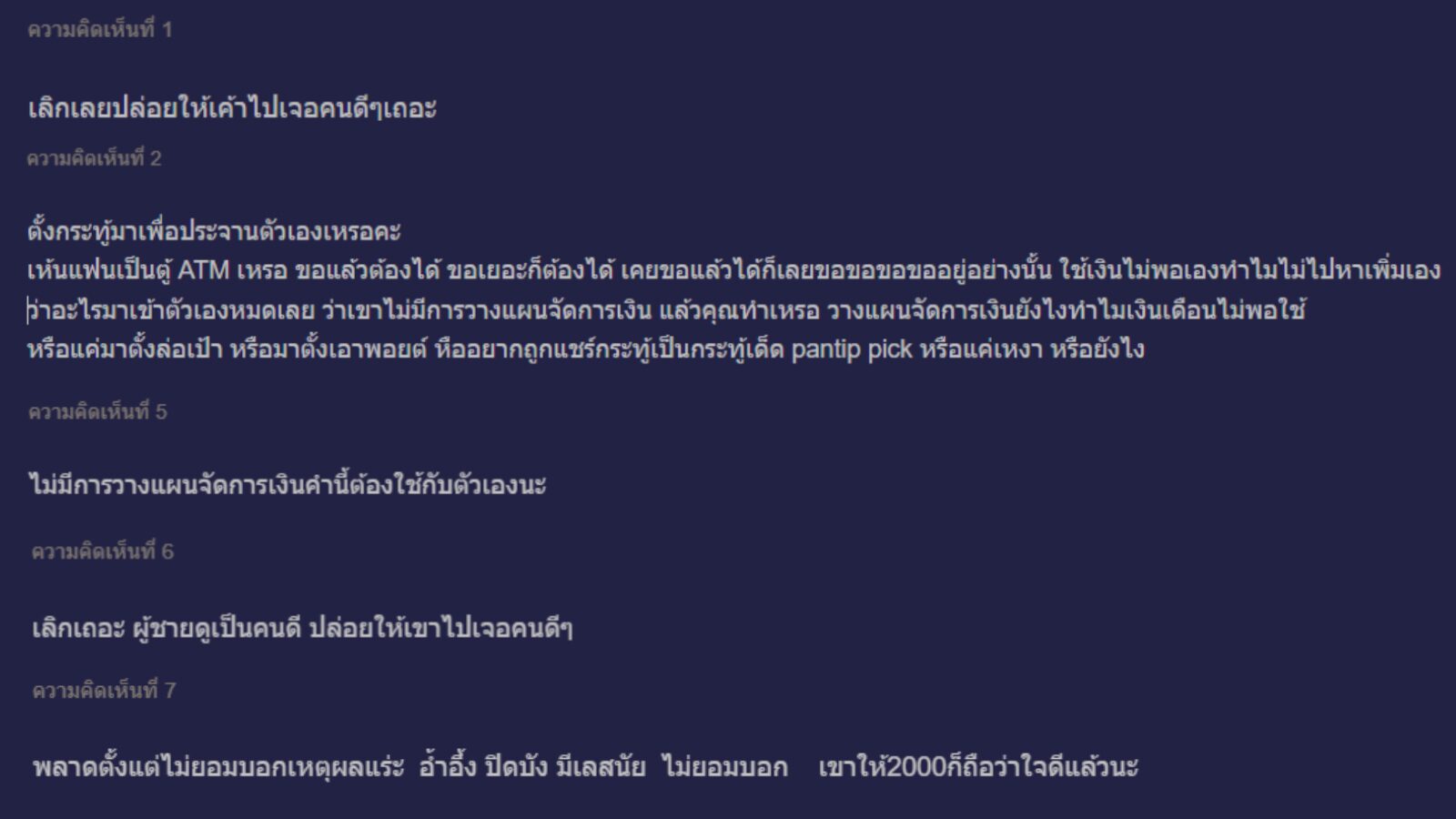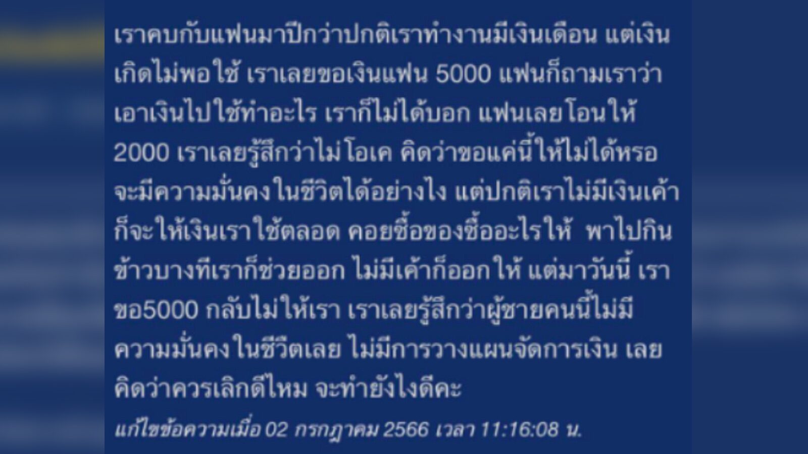 สาวระบาย เงินไม่พอใช้เลยขอแฟน 5,000 ดันให้แค่ 2,000 ดูไม่มั่นคง เลิกดีมั้ย?