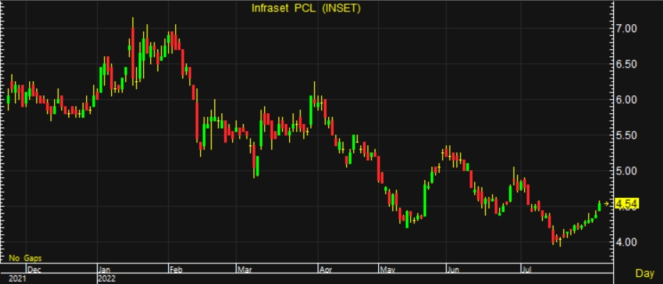 ผู้สื่อข่าวรายงานว่า วันนี้ (5 ส.ค.65) ราคาหุ้น บริษัท อินฟราเซท จำกัด (มหาชน) หรือ INSET ล่าสุด ณ เวลา 10:17 น. อยู่ที่ระดับ 4.54 บาท บวก 0.16 บาท หรือ 3.65% สูงสุดที่ระดับ 4.58 บาท ต่ำสุดที่ระดับ 4.44 บาท ด้วยมูลค่าซื้อขาย 24.08 ล้านบาท