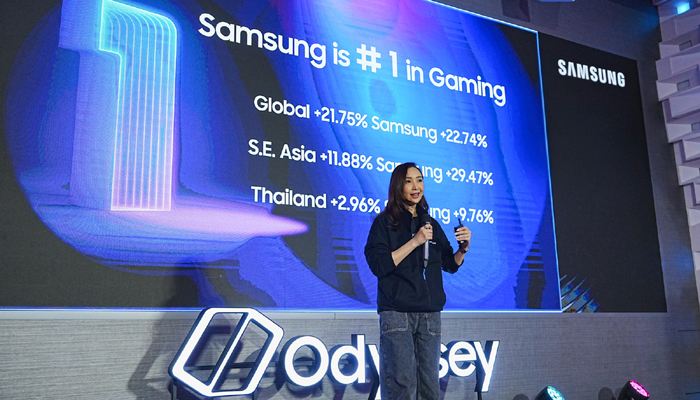 นางสาวอภิรดา พัวพรพงษ์ ผู้อำนวยการกลุ่มธุรกิจผลิตภัณฑ์จอภาพ กล่าวว่า ตลาดจอมอนิเตอร์พรีเมียมในประเทศ ไทยยังคงมีแนวโน้มเติบโตต่อเนื่อง แม้จะมีการแข่งขันสูง โดยในปีที่ผ่านมา ตลาดภาพรวมในประเทศไทยเติบโตขึ้น 2.96% ขณะที่ซัมซุงสามารถเติบโตได้ถึง 9.76% (ข้อมูลอ้างอิงจาก IDC 2025 Q1) ซึ่งเป็นผลจากความต้องการจอเกมมิ่งที่เพิ่มขึ้นอย่างเห็นได้ชัด ตามการเติบโตของอุตสาหกรรมเกม การสตรีมเกม และการแข่งขันอีสปอร์ตทั้งในไทยและภูมิภาคเอเชียตะวันออกเฉียงใต้ สอดคล้องกับพฤติกรรมผู้บริโภคที่ให้ความสำคัญกับประสบการณ์การเล่นเกมที่สมจริง ทำให้จอเกมมิ่งกลายเป็นส่วนหนึ่งของไลฟ์สไตล์และการแสดงออกถึงตัวตนของผู้ใช้งานยุคใหม่