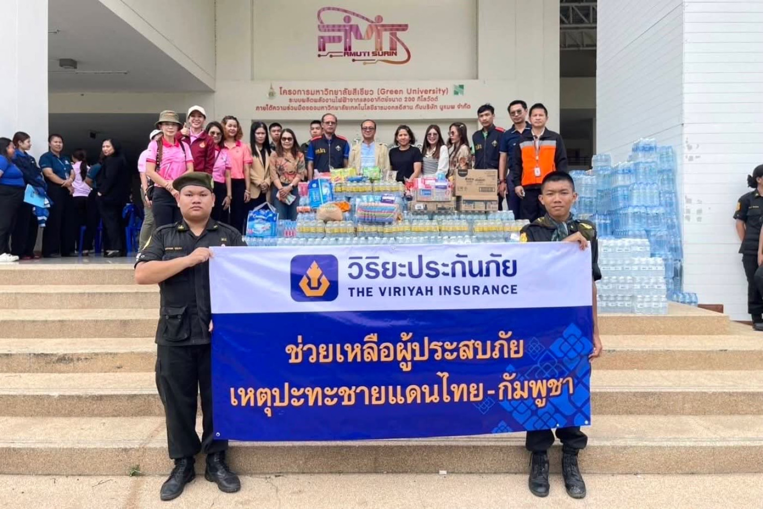 นายธีราทร แสงเงิน ผู้จัดการศูนย์ปฏิบัติการสินไหมทดแทนศรีสะเกษ บริษัท วิริยะประกันภัย จำกัด (มหาชน) นำกลุ่มวิริยะจิตอาสา มอบถุงยังชีพและเครื่องอุปโภค – บริโภค แก่ศูนย์รับบริจาคที่ว่าการอำเภอโนนคูณ เพื่อบรรเทาความเดือดร้อนเบื้องต้น และอำนวยความสะดวกด้านการดำรงชีวิตให้กับผู้ประสบภัยจากเหตุการณ์ความไม่สงบในพื้นที่ชายแดนไทย – กัมพูชา ตลอดจนสนับสนุนการปฏิบัติงานของเจ้าหน้าที่และจิตอาสาทุกภาคส่วน ในการทำหน้าที่เพื่อช่วยเหลือประชาชนได้อย่างมีประสิทธิภาพและปลอดภัยสูงสุด ณ ที่ว่าการอำเภอโนนคูณ จังหวัดศรีสะเกษ