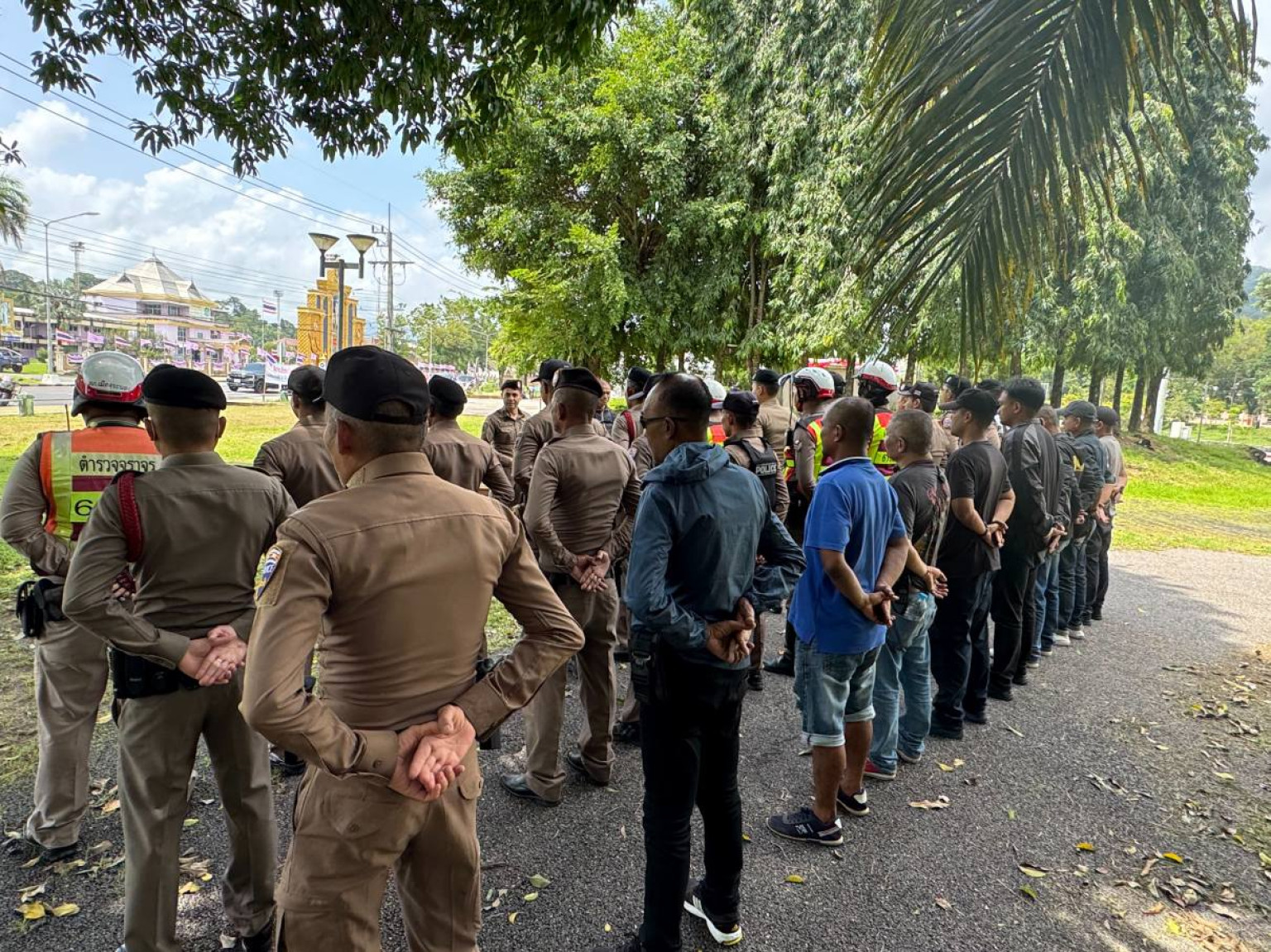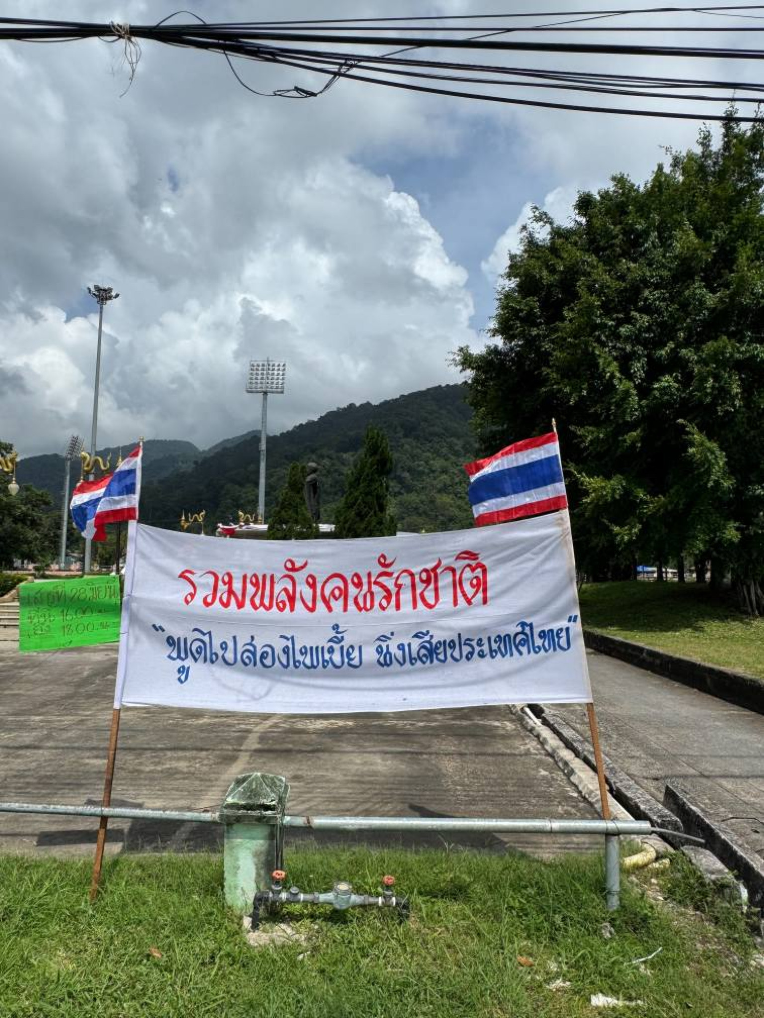 เมื่อวันที่ 28 มิถุนายน 2568 เวลา 14.30 น. บรรยากาศในกาชุมนุมปกป้องอธิปไตย ของชาวระนอง ที่ลานหน้าอนุสาวรีย์พระยาดำรงสุจริตมหิศรภักดี หรือ คอซูเจียง อดีตเจ้าเมืองระนอง มีการเริ่มปักธงชาติ และติดแผ่นผ้า เนื้อหา รวมพลังคนสร้างชาติ “พูดไปสองไพเบี้ย นิ่งเสียประเทศไทย” โดยมีกำลัง จนท.ตำรวจจาก สภ.เมืองระนอง รวม 40 นาย ทั้งในเครื่องแบบและนอกเครท่องแบบ เข้าร่วมรักษาความปลอดภัยผู้เข้าร่วมชุมนุม ทั้งงานจราจรและงานข่าว โดยมีเวทีเล็กๆตั้งอยู่ด้านข้าง ริมคลองหาดส้มแป้น มีผู้ร่วมชุมนุมที่เดินทางมาก่อนเวลาตั้งแต่ 4 โมงเช้า รวม 4 คน พร้อมย้ำว่า มีเพียง 4 คนเราก็จะสู้ บนเวทีปราศรัยจะเริ่มในเวลา 16.00 น.